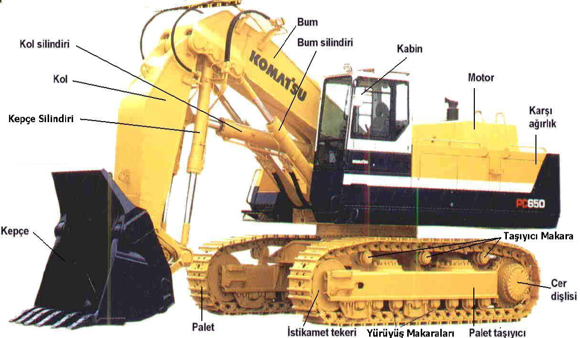 Ekskavatör, palet ve tekerlek seviyesinden üst ve alt seviyelerde kazı yapma, üst tabanları sıyırma, kırma, kanal şeklinde kazı yapma ve yükleme işleri yapan iş makineleridir.