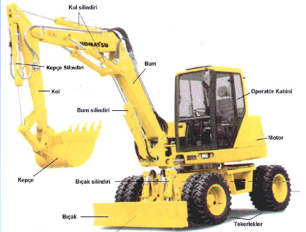 Yürüme kabiliyeti ve sert zeminde kazma, kanal açma, taşıma ve yükleme gibi işlerde verimli olan lastik tekerlekli iş makinalardır